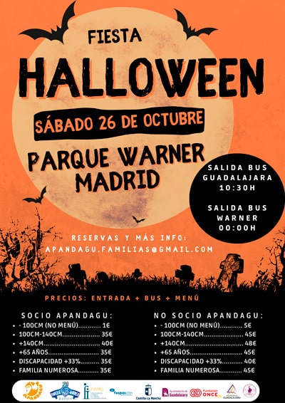 APANDAGU está preparando la actividad de Halloween para el sábado 26 de octubre. Como otros años, será una excursión al parque Warner de Madrid que podrá disfrutar todo el mundo, tanto socios como no socios.